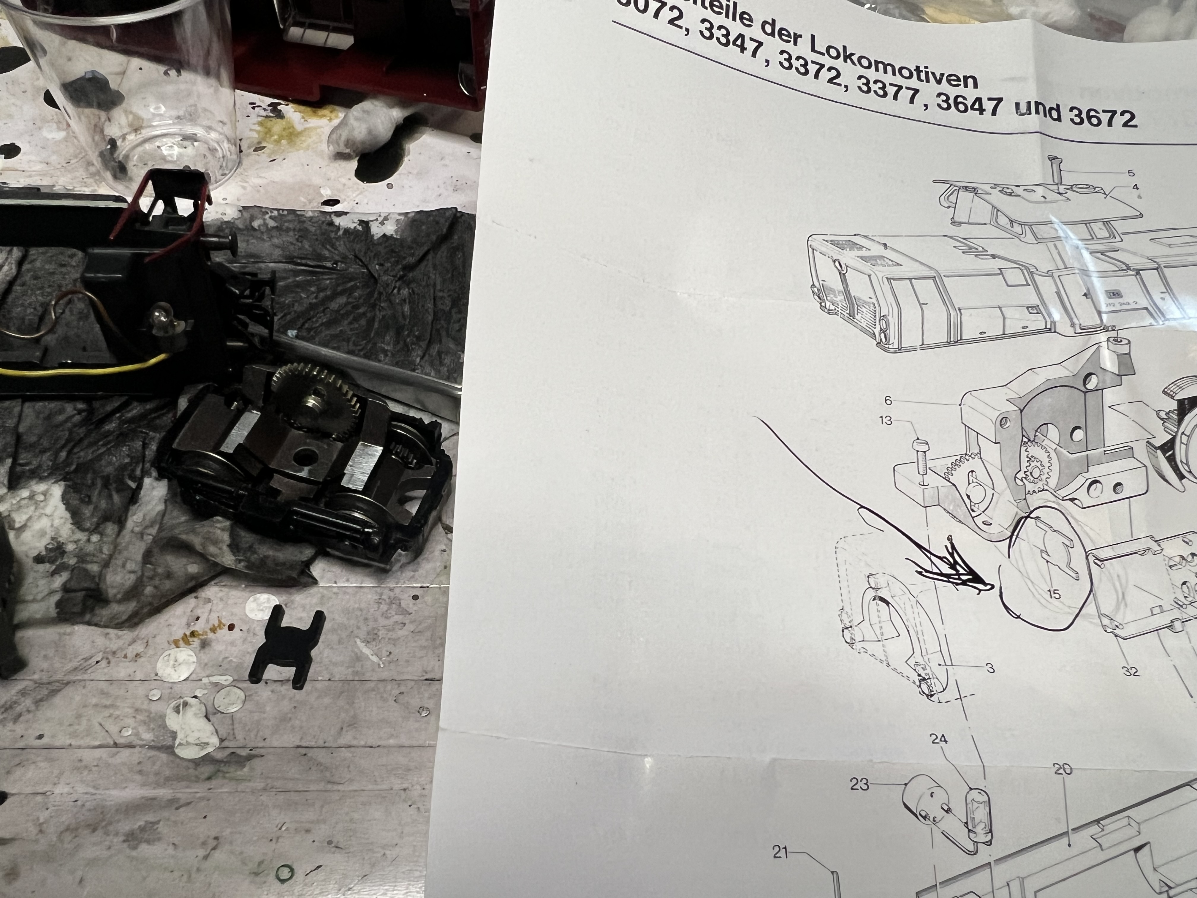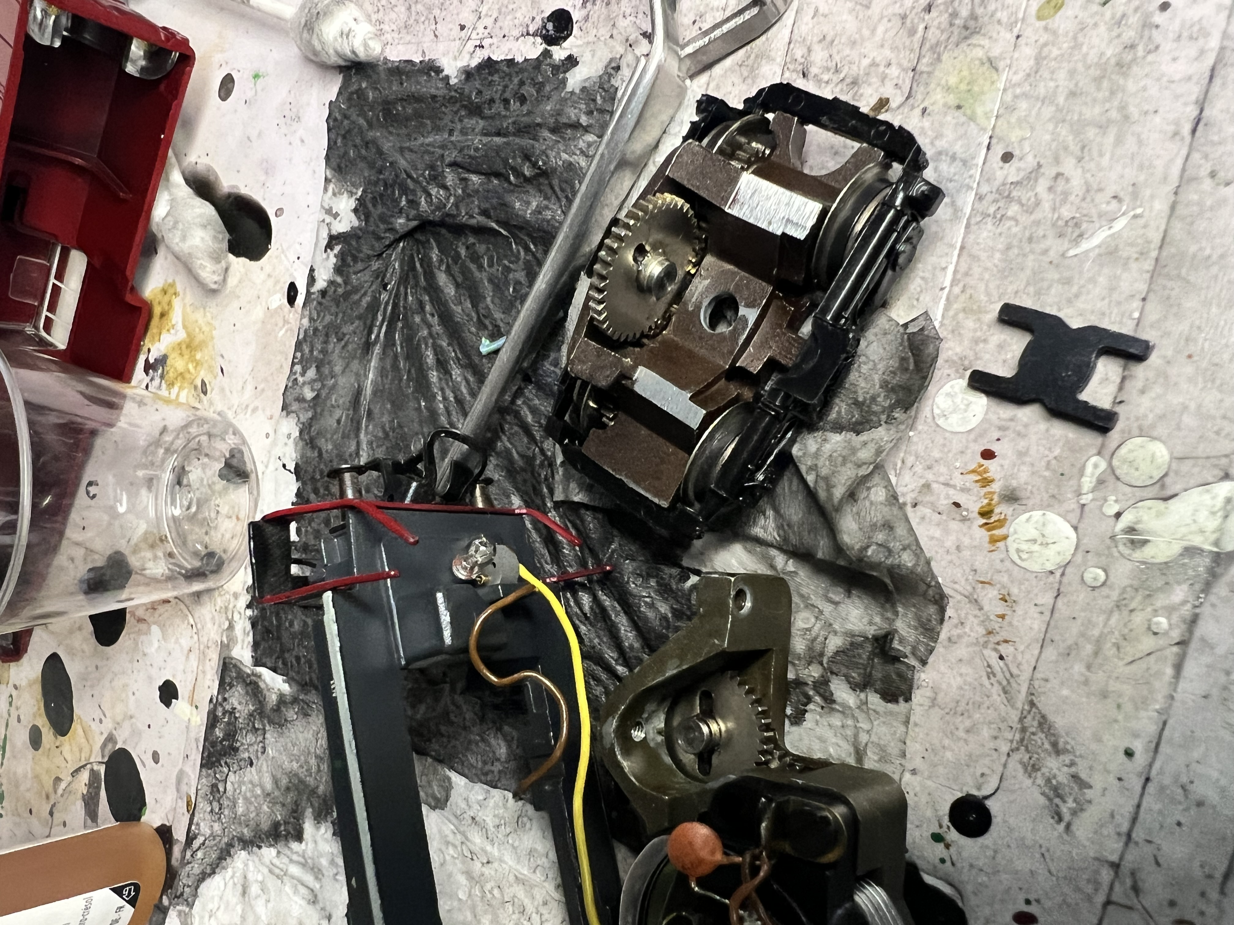 But I have to get it assembled first. I started early at 7.30 am to dessable the motor and go thru a thorough leaning after 40 years in the box. Rarely have I seen so much seized oil and grime. I have after spent the best part of 2 hours trying to get it back together. But I simply don´t have the manual skills, unless I am missing something when I try and assemble the traction bogie.