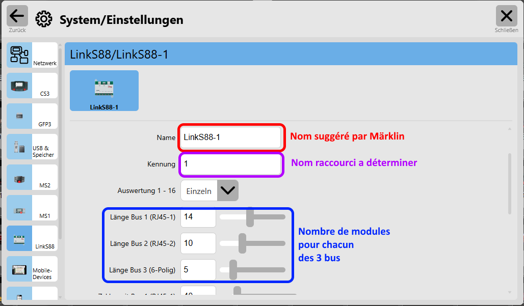 Only the LinkS88 (60883) is recognized by the CS3
